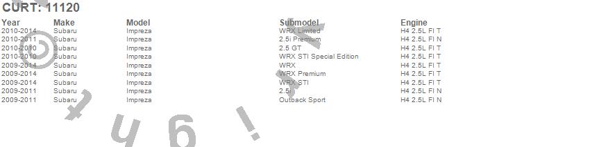 Below is an abbreviated list of applications for the Class I 1.25 in. Receiver Hitch.Impreza, Subaru, 2014, 2013, 2012, 2011, 2010, 2009