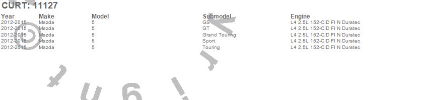 Below is an abbreviated list of applications for the Class I 1.25 in. Receiver Hitch.5, Mazda, 2015, 2014, 2013, 2012