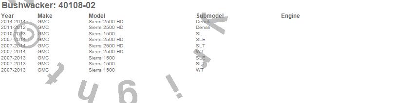 Below is an abbreviated list of applications for the Extend-A-Fender Flares.Sierra 1500, Sierra 2500 HD, GMC, 2014, 2013, 2012, 2011, 2010, 2009, 2008, 2007