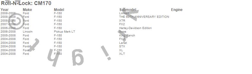 Below is an abbreviated list of applications for the Cargo Manager Rolling Truck Bed Divider.F-150, Mark LT, Ford, Lincoln, 2008, 2007, 2006, 2005, 2004