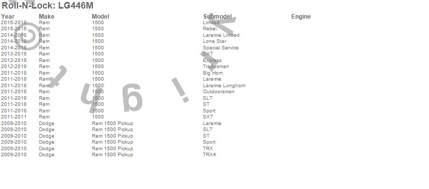 Below is an abbreviated list of applications for the Roll-N-Lock M-Series Truck Bed Cover.1500, Ram 1500, Dodge, Ram, 2018, 2017, 2016, 2015, 2014, 2013, 2012, 2011, 2010, 2009