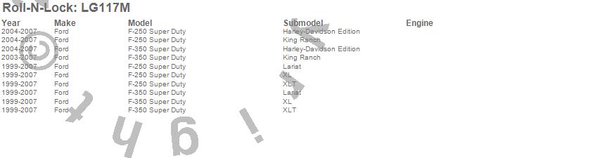 Below is an abbreviated list of applications for the Roll-N-Lock M-Series Truck Bed Cover.F-250 Super Duty, F-350 Super Duty, Ford, 2007, 2006, 2005, 2004, 2003, 2002, 2001, 2000, 1999