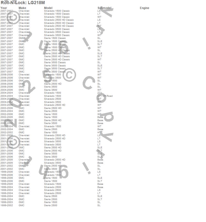 Below is an abbreviated list of applications for the Roll-N-Lock M-Series Truck Bed Cover.Sierra 1500, Sierra 1500 Classic, Sierra 2500, Sierra 2500 HD, Sierra 2500 HD Classic, Sierra 3500, Sierra 3500 Classic, Silverado 1500, Silverado 1500 Classic, Silverado 2500, Silverado 2500 HD, Silverado 2500 HD Classic, Silverado 3500, Silverado 3500 Classic, Chevrolet, GMC, 2007, 2006, 2005, 2004