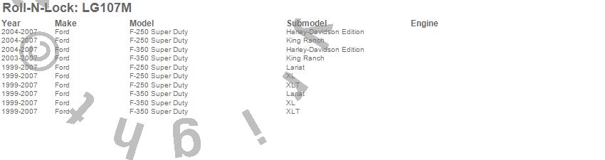 Below is an abbreviated list of applications for the Roll-N-Lock M-Series Truck Bed Cover.F-250 Super Duty, F-350 Super Duty, Ford, 2007, 2006, 2005, 2004, 2003, 2002, 2001, 2000, 1999