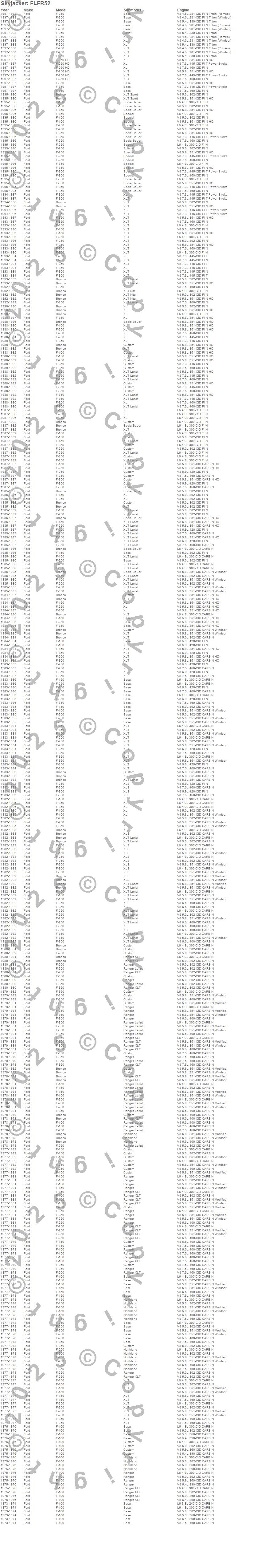 Below is an abbreviated list of applications for the Fitted Leaf.Bronco, F-100 Pickup, F-150 Pickup, F-250 Pickup, F-350 Pickup, Ford, 1998, 1997, 1996, 1995, 1994, 1993, 1992, 1991, 1990, 1989, 1988, 1987, 1986, 1985