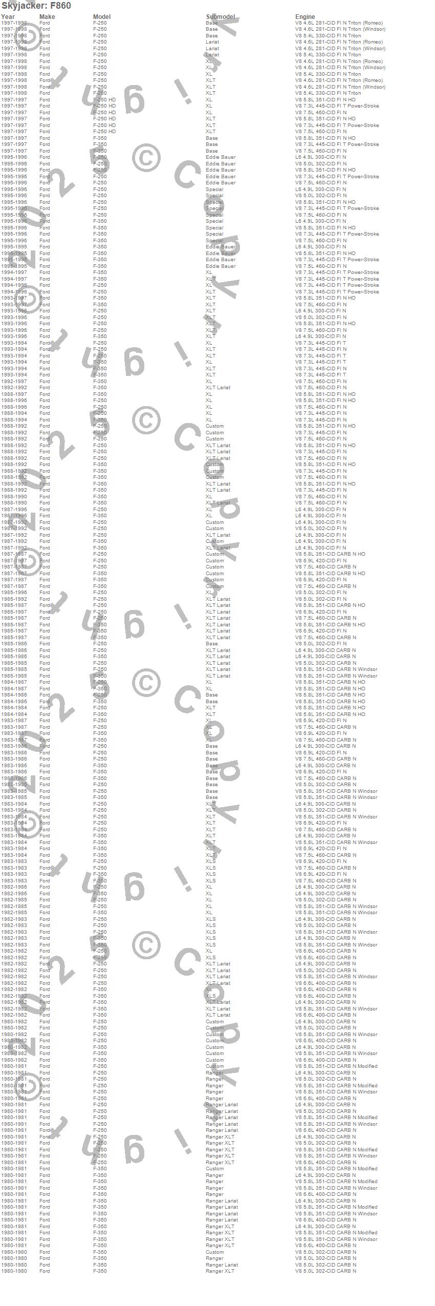 Below is an abbreviated list of applications for the Softride Leaf Spring.F-250 Pickup, F-350 Pickup, Ford, 1998, 1997, 1996, 1995, 1994, 1993, 1992, 1991, 1990, 1989, 1988, 1987, 1986, 1985, 1984, 1983, 1982
