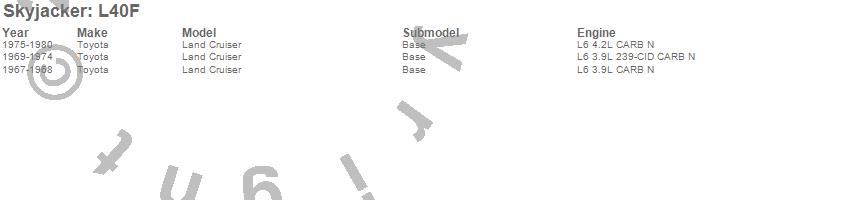 Below is an abbreviated list of applications for the Softride Leaf Spring.Land Cruiser, Toyota, 1980, 1979, 1978, 1977, 1976, 1975, 1974, 1973, 1972, 1971, 1970, 1969, 1968, 1967