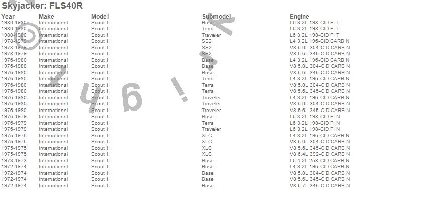 Below is an abbreviated list of applications for the Fitted Leaf.Scout II, International, 1980, 1979, 1978, 1977, 1976, 1975, 1974, 1973, 1972