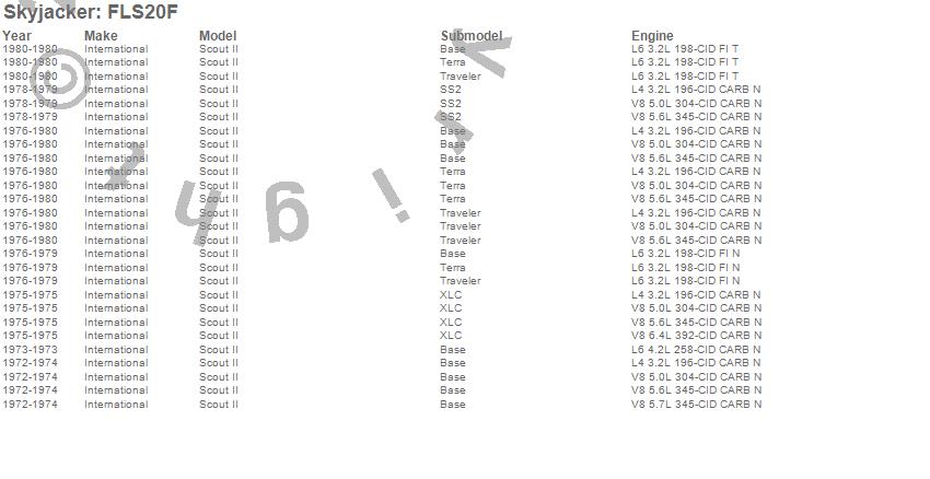 Below is an abbreviated list of applications for the Fitted Leaf.Scout II, International, 1980, 1979, 1978, 1977, 1976, 1975, 1974, 1973, 1972