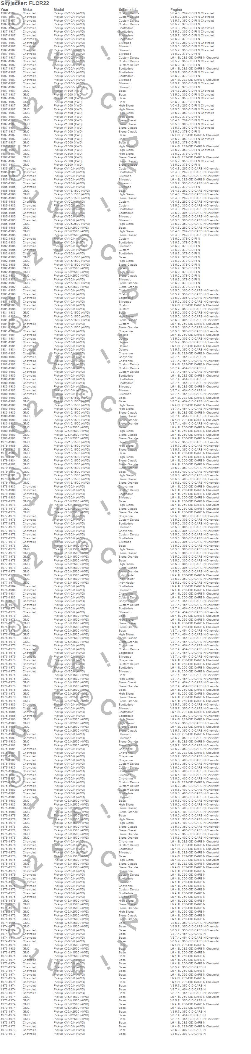 Below is an abbreviated list of applications for the Fitted Leaf.K10 Pickup, K15 Pickup, K15/K1500 Pickup, K1500 Pickup, K20 Pickup, K25 Pickup, K25/K2500 Pickup, K2500 Pickup, V10 Pickup, V1500 Pickup, V20 Pickup, V2500 Pickup, Chevrolet, GMC, 1987, 1986, 1985, 1984, 1983, 1982