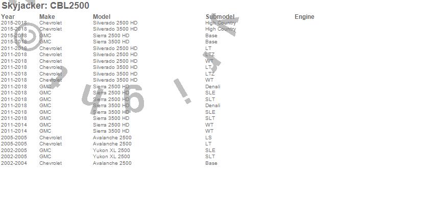 Below is an abbreviated list of applications for the Carrier Bearing Lowering Kit.Avalanche 2500, Yukon XL 2500, Chevrolet, GMC, 2005, 2004, 2003, 2002