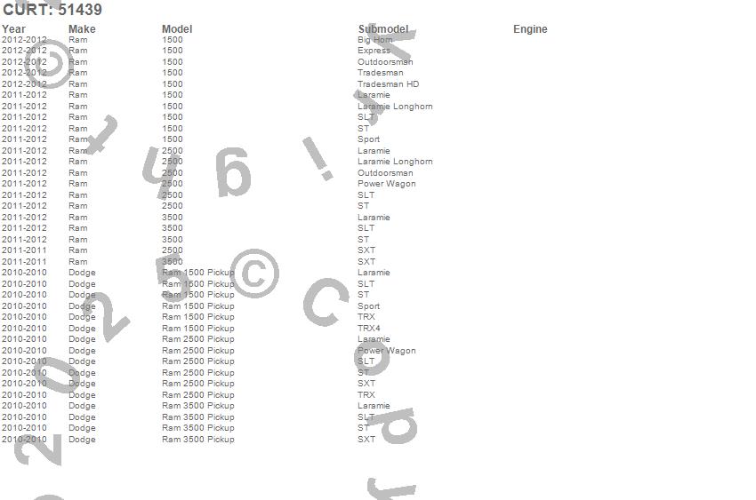 Brand: CURTPart Number: 51439Trailer Brake Control Wire Harness Type: Incl. OEM Connector - 2 ft. Wire - Protective Sleeve - 12 Ga. Wire - w/Quick Plug - PackageUPC: 612314002924