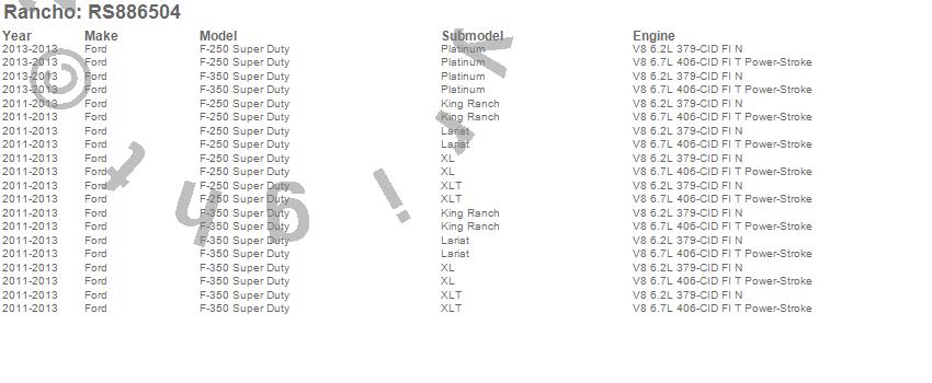 Below is an abbreviated list of applications for the Block Kit.F-250 SUPER DUTY PICKUP, F-250 SUPER DUTY PICKUP (Canadian), F-350 SUPER DUTY PICKUP, F-350 SUPER DUTY PICKUP (Canadian), FORD, 2013, 2012, 2011