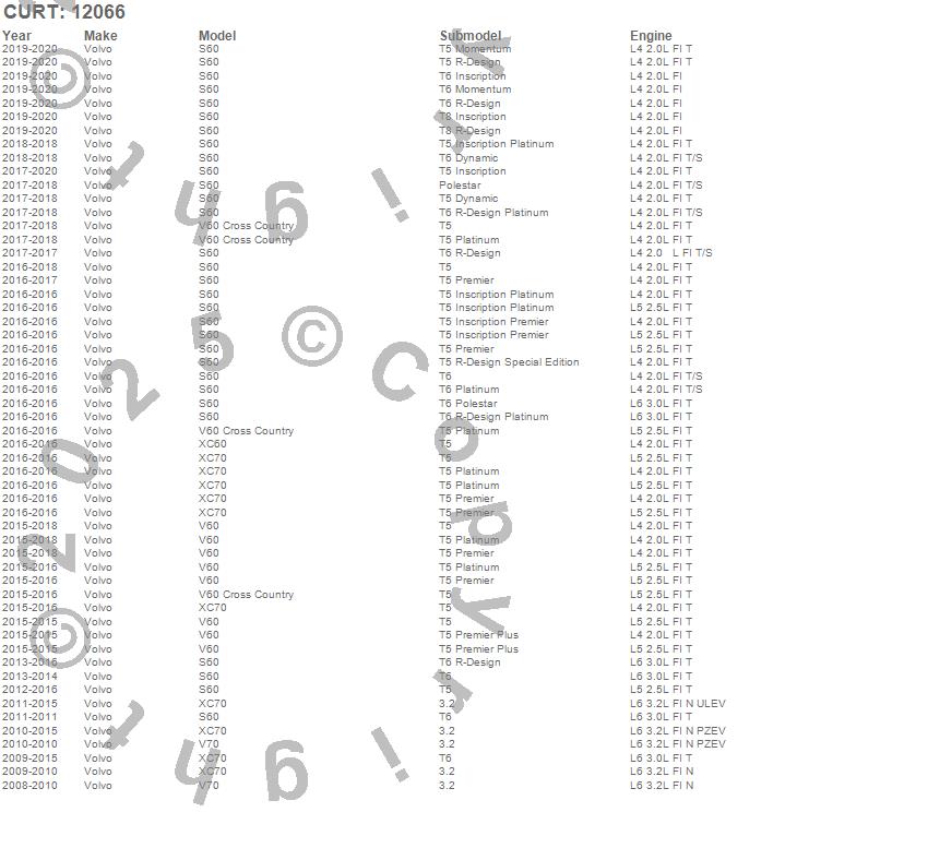 Below is an abbreviated list of applications for the Class II 1.25 in. Receiver Hitch.S60, V60, V60 Cross Country, V70, XC60, XC70, Volvo, 2020, 2019, 2018, 2017, 2016, 2015, 2014, 2013, 2012, 2011, 2010, 2009, 2008