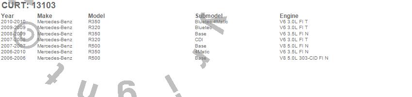 Below is an abbreviated list of applications for the Class III 2 in. Receiver Hitch.R320, R350, R500, Mercedes-Benz, 2010, 2009, 2008, 2007, 2006