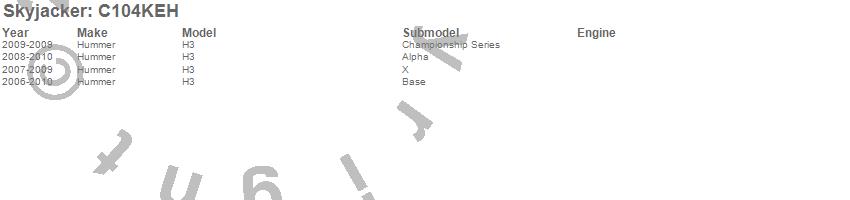 Below is an abbreviated list of applications for the Torsion Key Front Leveling Kit.H3, Hummer, 2010, 2009, 2008, 2007, 2006