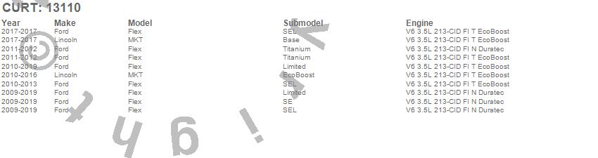 Below is an abbreviated list of applications for the Class III 2 in. Receiver Hitch.Flex, MKT, Ford, Lincoln, 2019, 2018, 2017, 2016, 2015, 2014, 2013, 2012, 2011, 2010, 2009