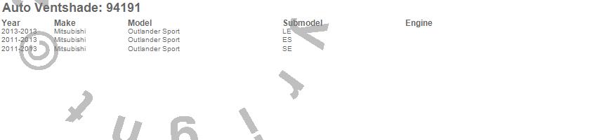 Below is an abbreviated list of applications for the Ventvisor Deflector 4 pc..Outlander Sport, Mitsubishi, 2013, 2012, 2011