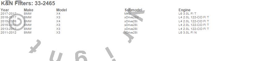 Below is an abbreviated list of applications for the Air Filter.X3, X4, BMW, 2018, 2017, 2016, 2015, 2014, 2013, 2012, 2011