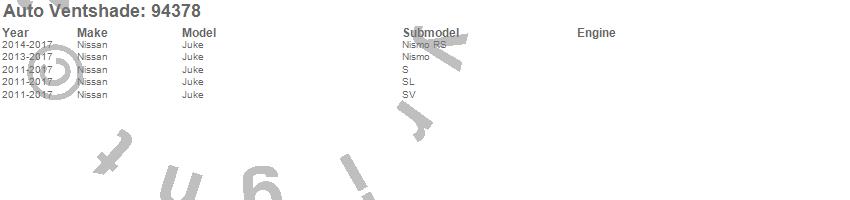 Below is an abbreviated list of applications for the Ventvisor Deflector 4 pc..Juke, Nissan, 2017, 2016, 2015, 2014, 2013, 2012, 2011