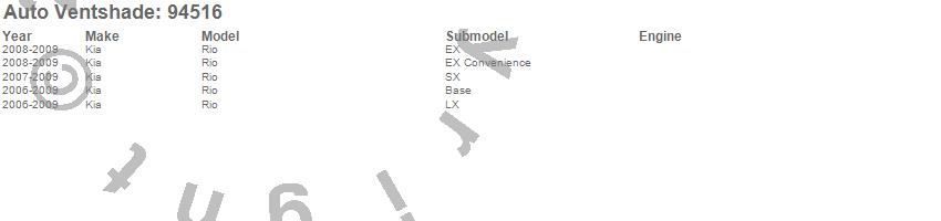 Below is an abbreviated list of applications for the Ventvisor Deflector 4 pc..Rio, Kia, 2009, 2008, 2007, 2006