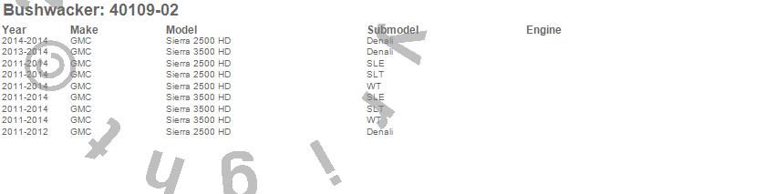 Below is an abbreviated list of applications for the Boss Pocket Style Fender Flares.Sierra 2500 HD, Sierra 3500 HD, GMC, 2014, 2013, 2012, 2011