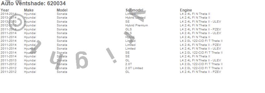 Below is an abbreviated list of applications for the Aeroskin Chrome Hood Protector.Sonata, Hyundai, 2014, 2013, 2012, 2011