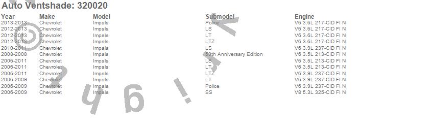 Below is an abbreviated list of applications for the Aeroskin Smoke Hood Protector.Impala, Chevrolet, 2013, 2012, 2011, 2010, 2009, 2008, 2007, 2006