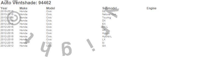 Below is an abbreviated list of applications for the Ventvisor Deflector 4 pc..Civic, Honda, 2015, 2014, 2013, 2012
