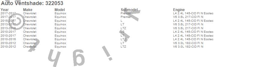 Below is an abbreviated list of applications for the Aeroskin Smoke Hood Protector.Equinox, Chevrolet, 2017, 2016, 2015, 2014, 2013, 2012, 2011, 2010