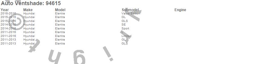 Below is an abbreviated list of applications for the Ventvisor Deflector 4 pc..Elantra, Hyundai, 2016, 2015, 2014, 2013, 2012, 2011