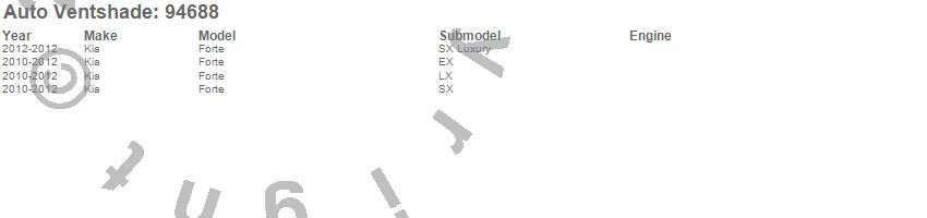 Below is an abbreviated list of applications for the Ventvisor Deflector 4 pc..Forte, Kia, 2012, 2011, 2010