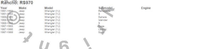 Brand: RanchoPart Number: RS970Leaf Spring Bushing Type: Front And RearUPC: 039703097000