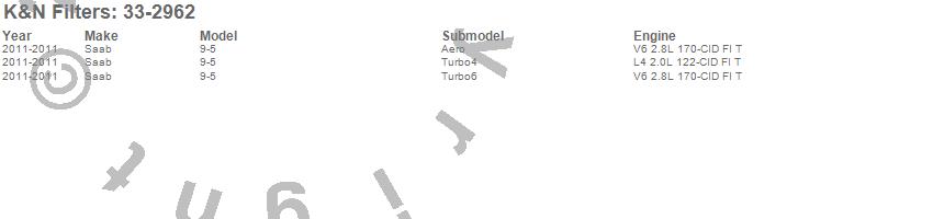 Below is an abbreviated list of applications for the Air Filter.9-5, Saab, 2011