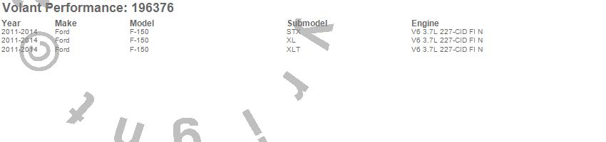 Brand: Volant PerformancePart Number: 196376Air Intake Kit Type: Incl. Closed Filter Box/Air Duct/PowerCore Filter/Connectors/ClampsUPC: 831362009741