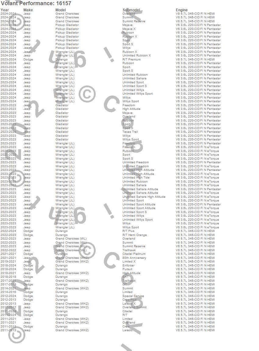 Below is an abbreviated list of applications for the Cold Air Intake Kit.Durango, Gladiator, Grand Cherokee (WK2), Grand Cherokee (WL), Pickup Gladiator, Wrangler (JL), Dodge, Jeep, 2024, 2023, 2022, 2021, 2020, 2019, 2018, 2017, 2016, 2015, 2014, 2013