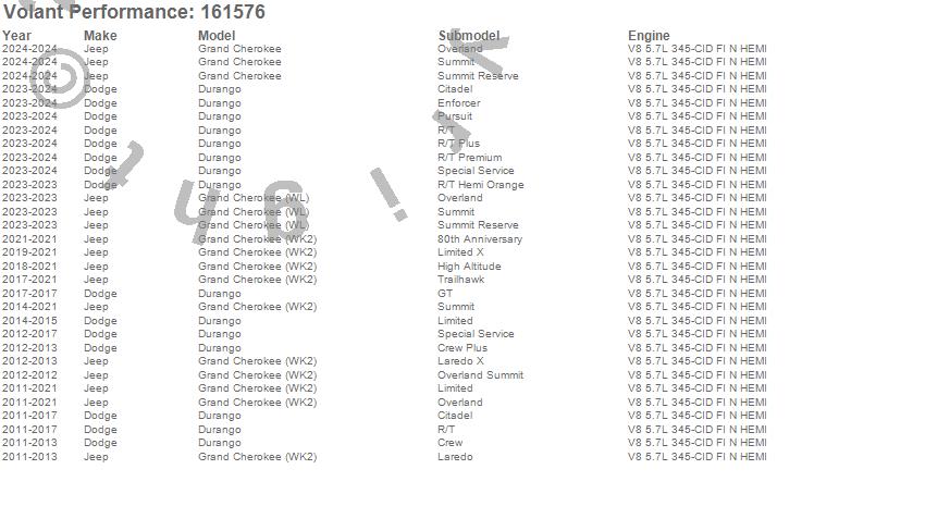 Below is an abbreviated list of applications for the Cold Air Intake Kit.Durango, Grand Cherokee (WK2), Grand Cherokee (WL), Dodge, Jeep, 2024, 2023, 2021, 2020, 2019, 2018, 2017, 2016, 2015, 2014, 2013, 2012, 2011