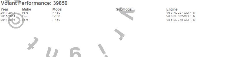 Brand: Volant PerformancePart Number: 39850Engine Air Intake Scoop Type: UPC: 831362009833