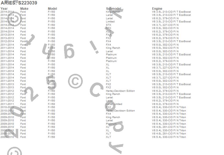 Below is an abbreviated list of applications for the The Standard 4 in. Oval Nerf Bar.F-150, Ford, 2014, 2013, 2012, 2011, 2010, 2009