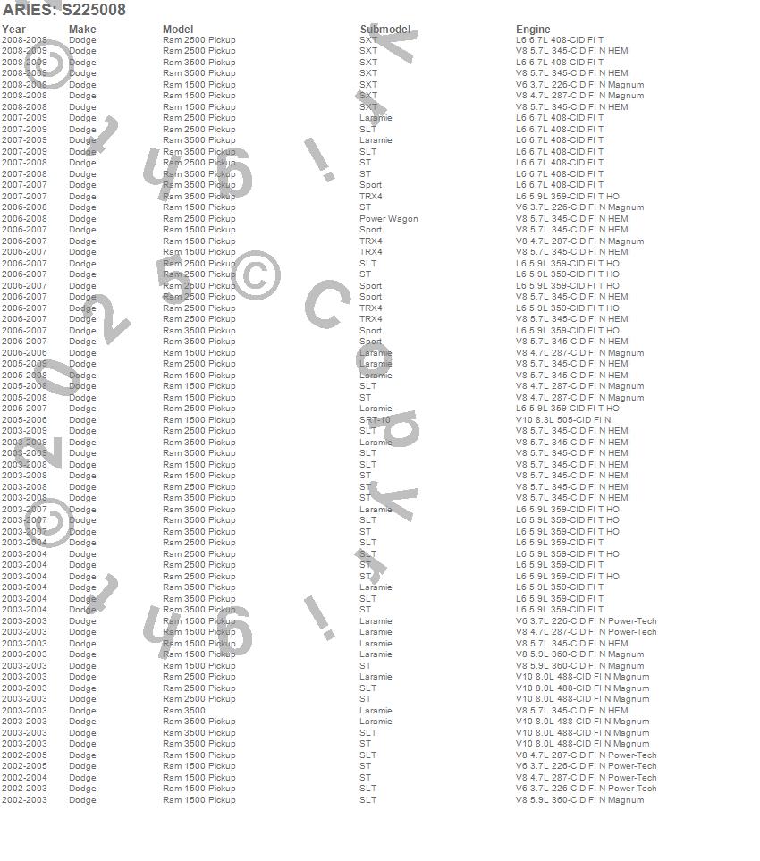 Below is an abbreviated list of applications for the The Standard 4 in. Oval Nerf Bar.Ram 1500, Ram 2500, Ram 3500, Dodge, 2009, 2008, 2007, 2006, 2005, 2004, 2003, 2002