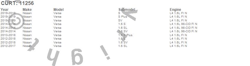 Below is an abbreviated list of applications for the Class I 1.25 in. Receiver Hitch.Versa, Nissan, 2019, 2018, 2017, 2016, 2015, 2014, 2013, 2012