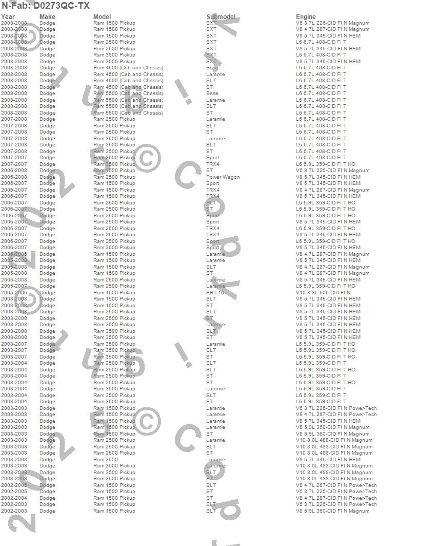 Below is an abbreviated list of applications for the Cab Length Nerf Step Bar.Ram 1500, Ram 2500, Ram 3500, Ram 4500, Ram 5500, Dodge, 2008, 2007, 2006, 2005, 2004, 2003, 2002
