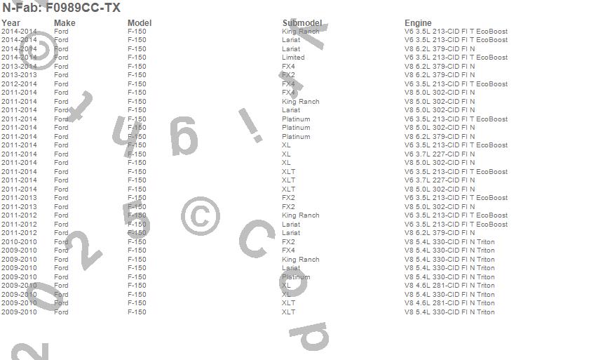 Below is an abbreviated list of applications for the Cab Length Nerf Step Bar.F-150, Ford, 2014, 2013, 2012, 2011, 2010, 2009