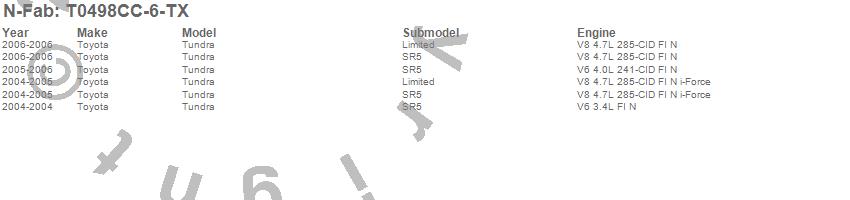 Below is an abbreviated list of applications for the Wheel To Wheel Nerf Step Bar w/Bed Access.Tundra, Toyota, 2006, 2005, 2004