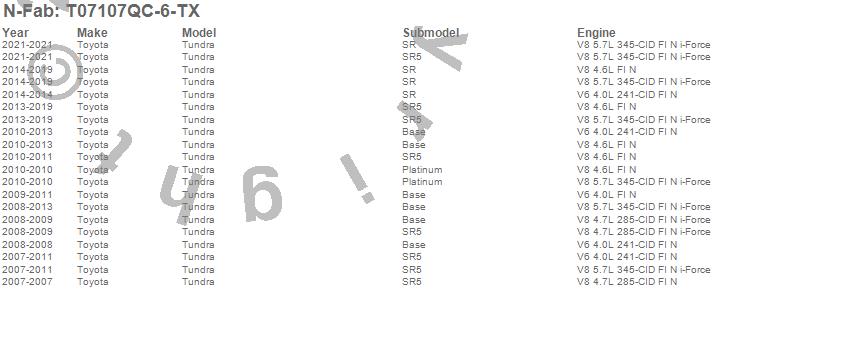 Brand: N-FabPart Number: T07107QC-6-TXNerf/Step Bar (Wheel to Wheel) Type: Textured Black - 6 Step - Special Order - 3 in. TubeUPC: 843206118748