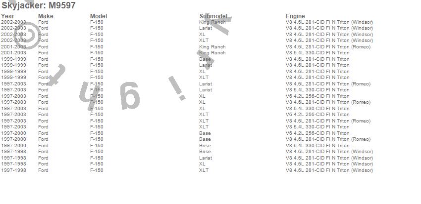 Below is an abbreviated list of applications for the M95 Performance Monotube Shock Absorber.F-150 Pickup, Ford, 2003, 2002, 2001, 2000, 1999, 1998, 1997