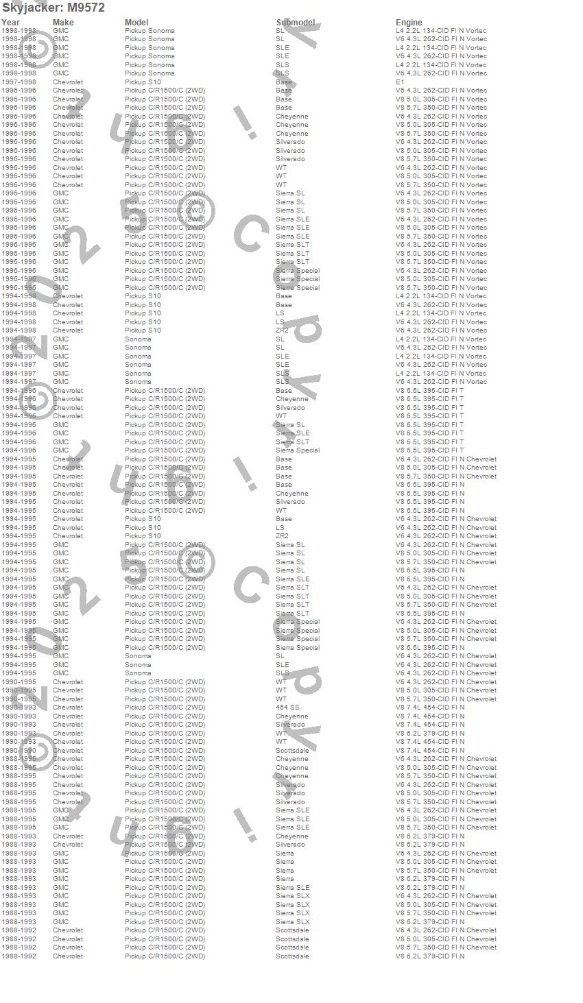 Below is an abbreviated list of applications for the M95 Performance Monotube Shock Absorber.C1500 Pickup, S10 Pickup, Sonoma, Chevrolet, GMC, 1998, 1997, 1996, 1995, 1994, 1993, 1992, 1991, 1990, 1989, 1988