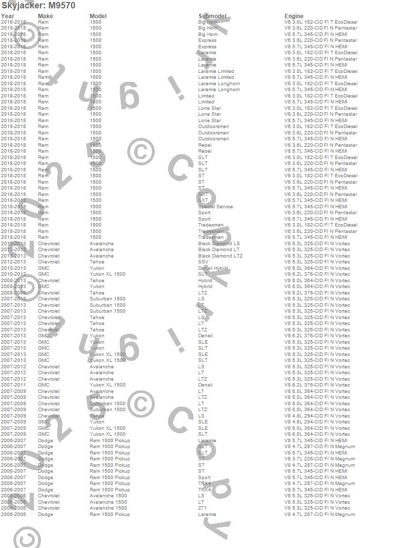 Below is an abbreviated list of applications for the M95 Performance Monotube Shock Absorber.Avalanche, Avalanche 1500, Ram 1500 Pickup, Suburban 1500, Tahoe, Yukon, Yukon XL 1500, Chevrolet, Dodge, GMC, 2013, 2012, 2011, 2010, 2009, 2008, 2007, 2006