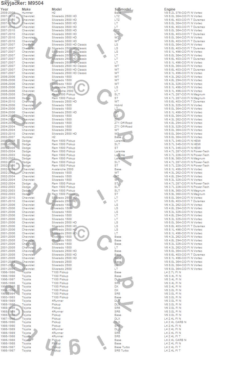 Below is an abbreviated list of applications for the M95 Performance Monotube Shock Absorber.4Runner, Pickup, T100, Toyota, 1998, 1997, 1996, 1995, 1994, 1993, 1992, 1991, 1990, 1989, 1988, 1987, 1986