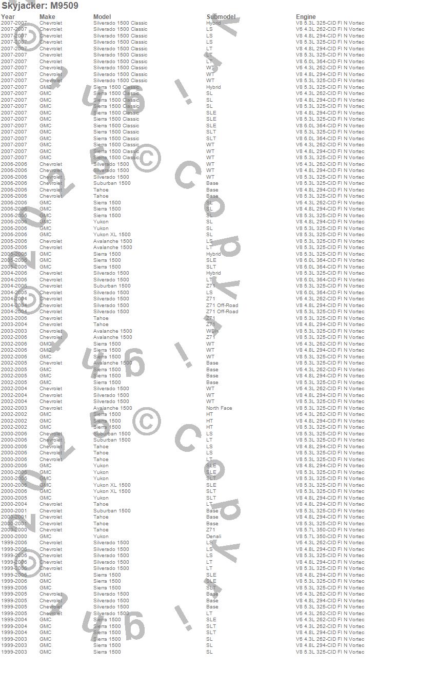 Below is an abbreviated list of applications for the M95 Performance Monotube Shock Absorber.Avalanche 1500, Sierra 1500, Sierra 1500 Classic, Silverado 1500, Silverado 1500 Classic, Suburban 1500, Tahoe, Yukon, Yukon XL 1500, Chevrolet, GMC, 2007, 2006, 2005, 2004, 2003, 2002, 2001, 2000, 1999